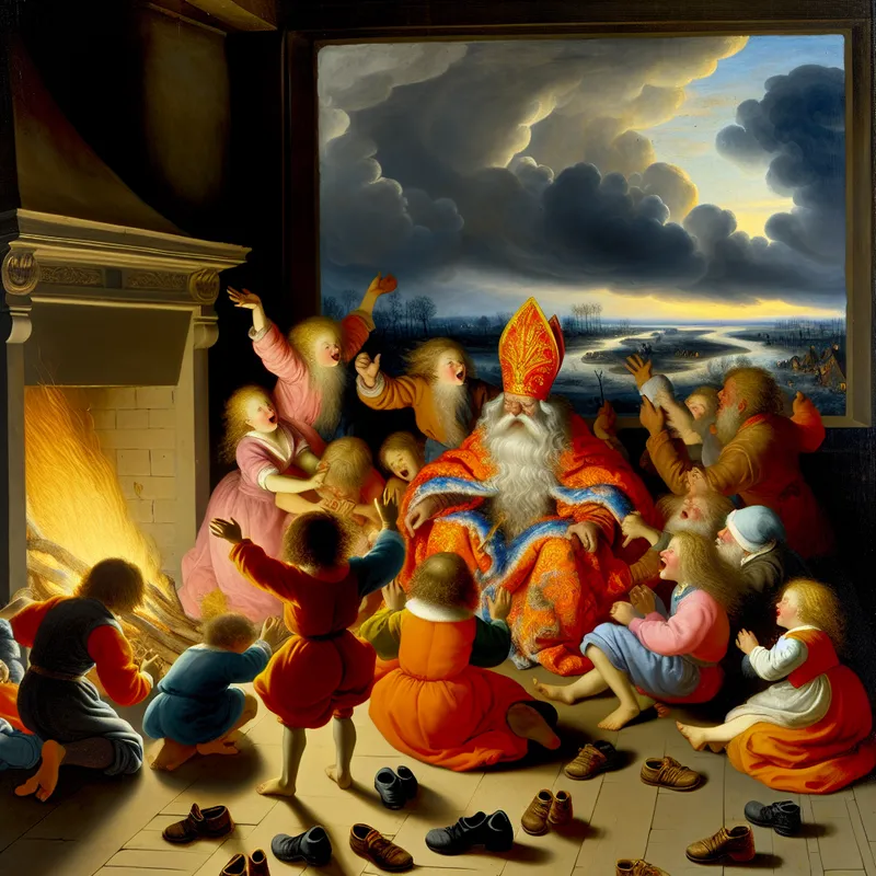Kinderen Zetten Hun Schoen voor Sinterklaas in Van Ruisdael Stijl