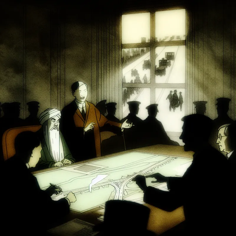 Een gemeentelijk kantoor waar ambtenaren een contract voor wegonderhoud bespreken en ondertekenen.