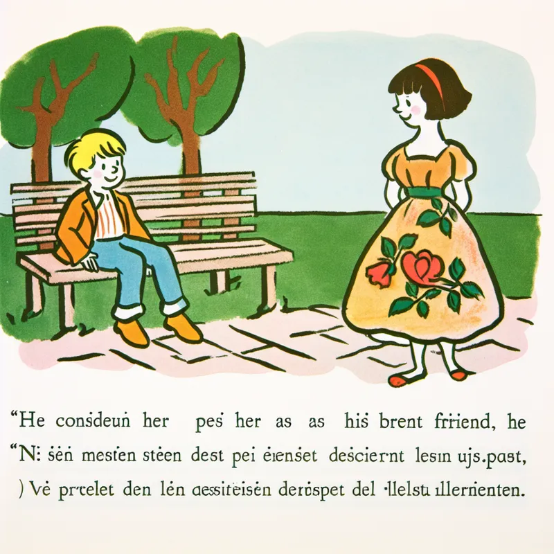 Jongentje op een bankje in het park kijkt naar een meisje dat glimlacht, symboliseert vriendschap.