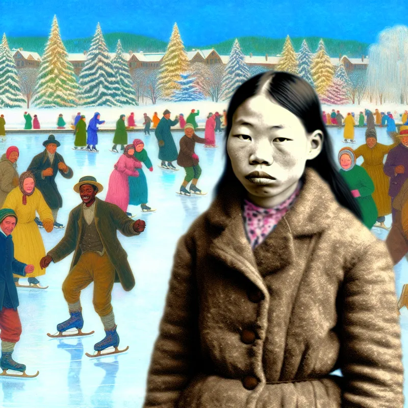 Winterse Sneeuwscène met Bleke Vrouw en Vriendelijke Activiteiten