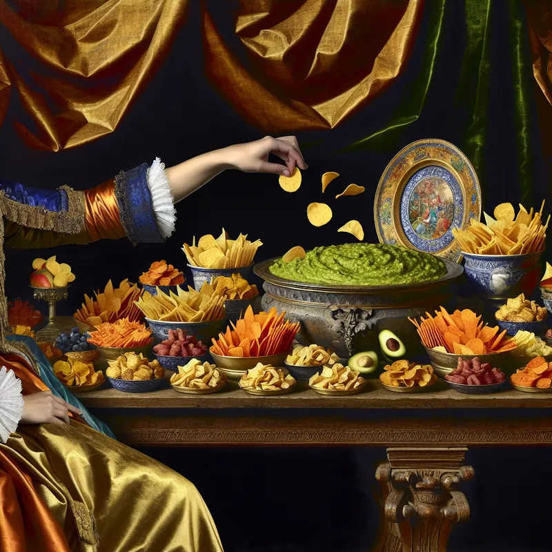 Kleurrijke snacks en guacamole in barokke setting