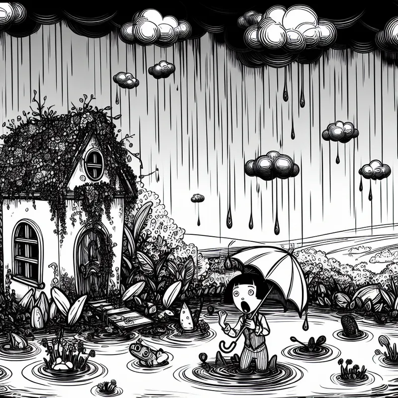 Het heeft hard geregend en daardoor staat de tuin blank.
