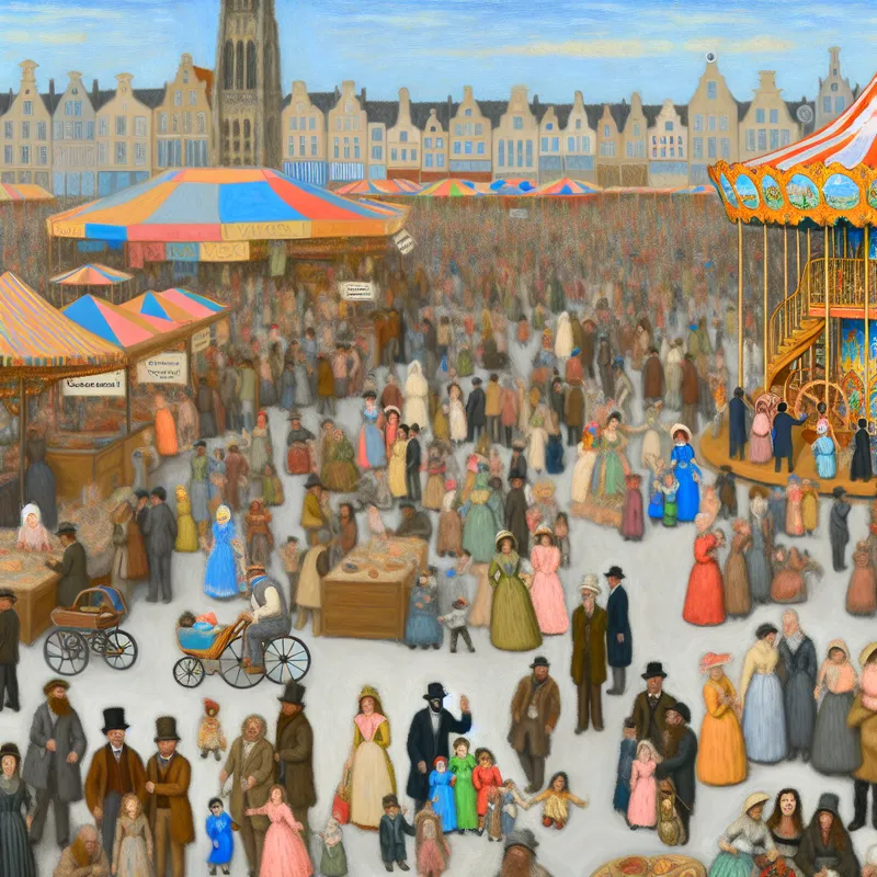 Een levendig festival vol met blije bezoekers rondom kleurrijke kraampjes en entertainment.