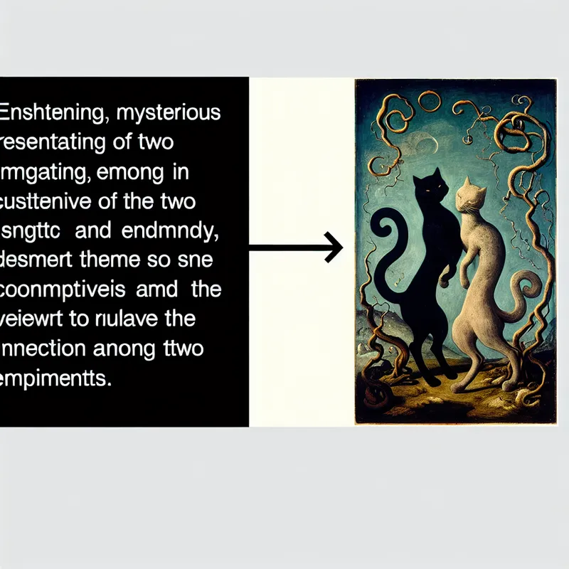 Een mysterieuze scène met een hond en een kat als schaduwachtige figuren, tegen een gotische achtergrond.