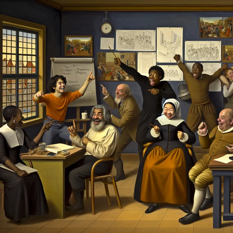 Diverse groep mensen in een levendige kantooromgeving die enthousiast over projectplannen discussiëren.