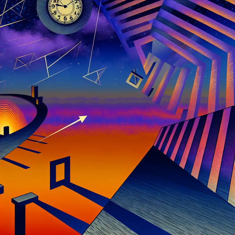 Surrealistische Geometrische Avondscène met Tijd en Illusie