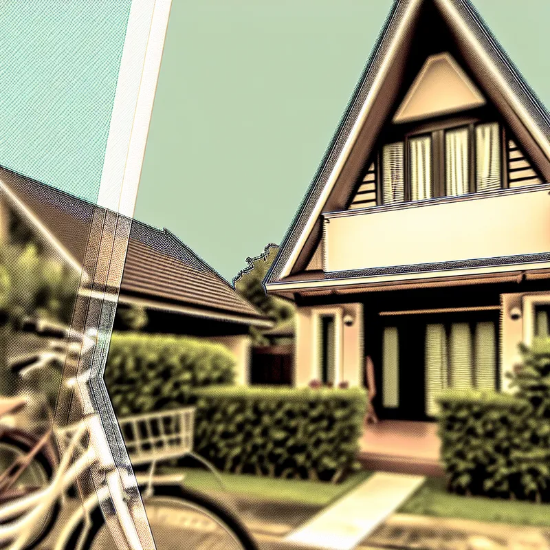 Close-up van een prachtig huis met een driehoekig dak en een fiets die tegen de muur leunt