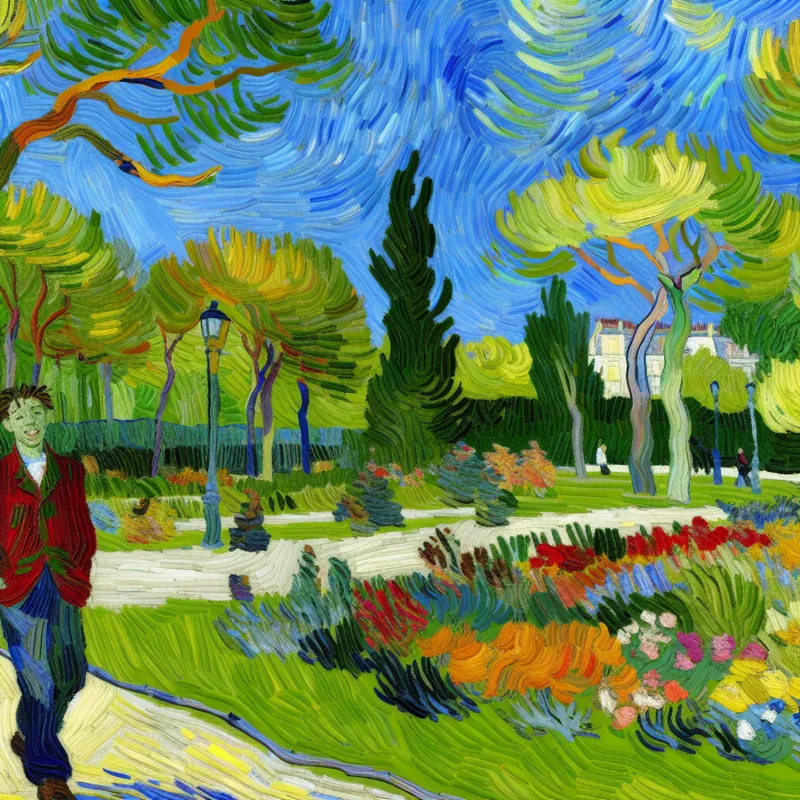 Pittoresk Park in de Stijl van Vincent van Gogh