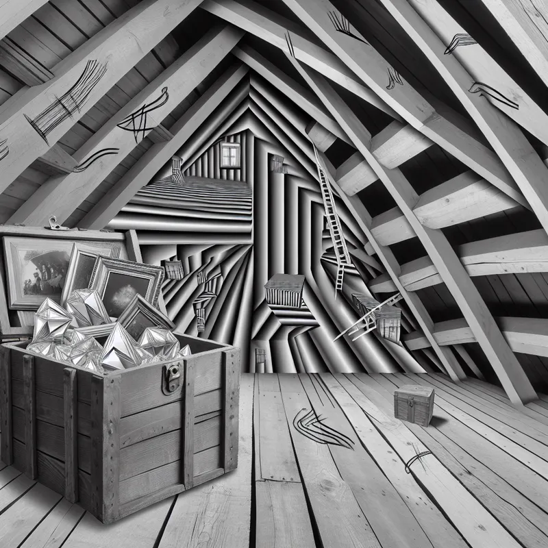 Op zolder staat een oude houten kist met foto's van mijn oma.