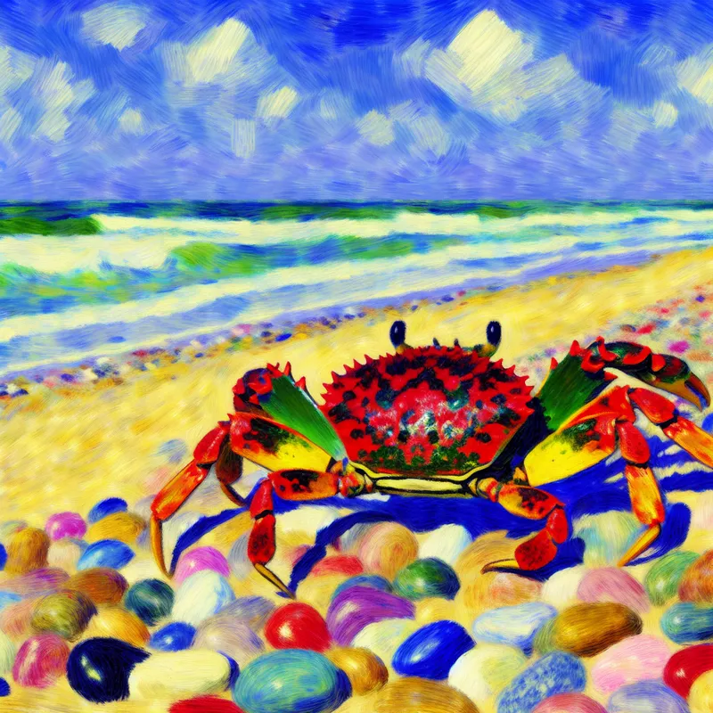 Vivid Beach Scene with Crab and Beach Stones