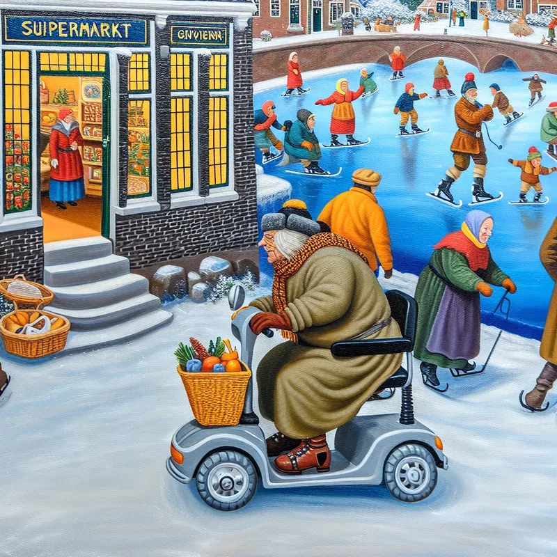 Mijn opa gaat met zijn mobiel naar de supermarkt om de hoek.