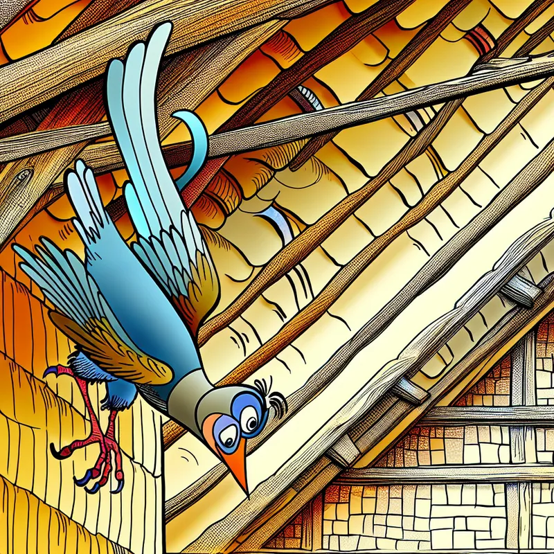 De vogel daalde langzaam neer op het dak.