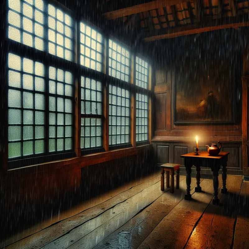 De regen tikt zachtjes tegen het raam van de slaapkamer.