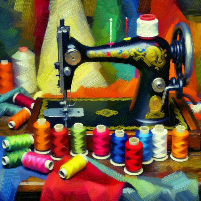 Naaimachine Stillife met Kleurige Garen en Lege Spoel