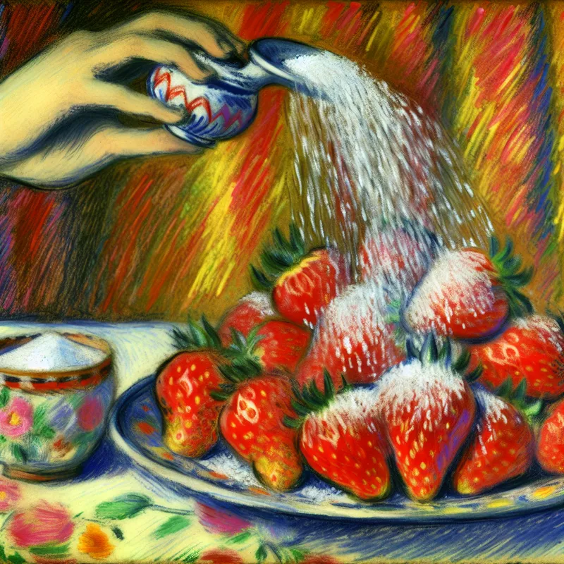 Stilleven van aardbeien met suiker in de stijl van Van Gogh