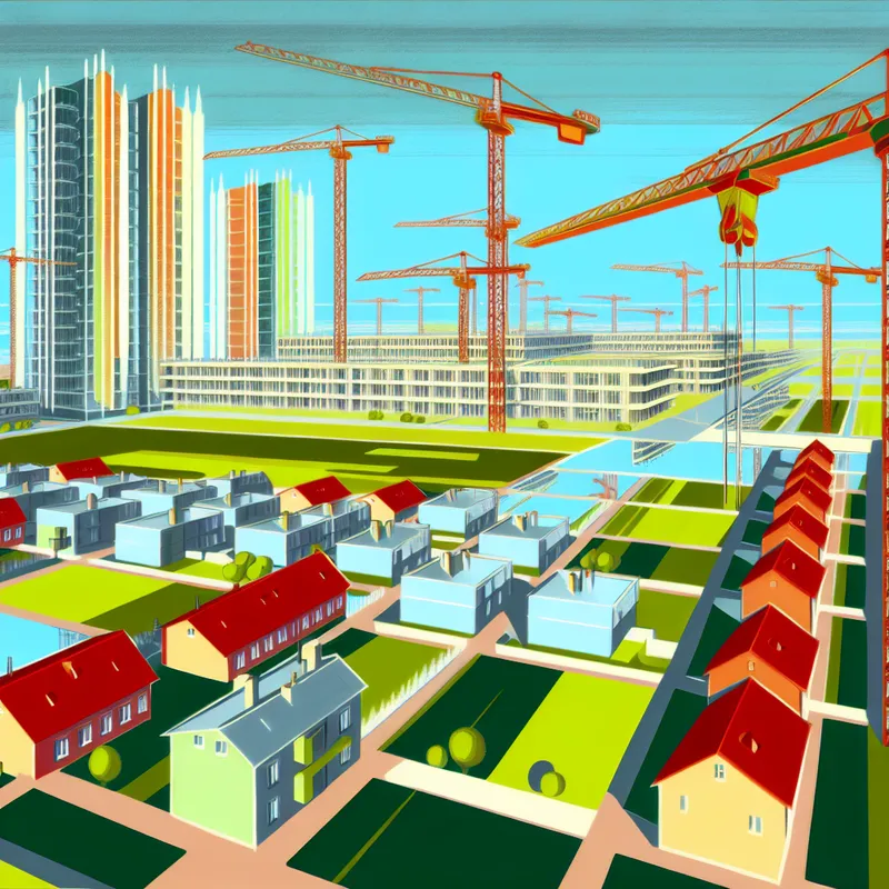 Stadsexpansie met moderne en retro-futuristische architectuur