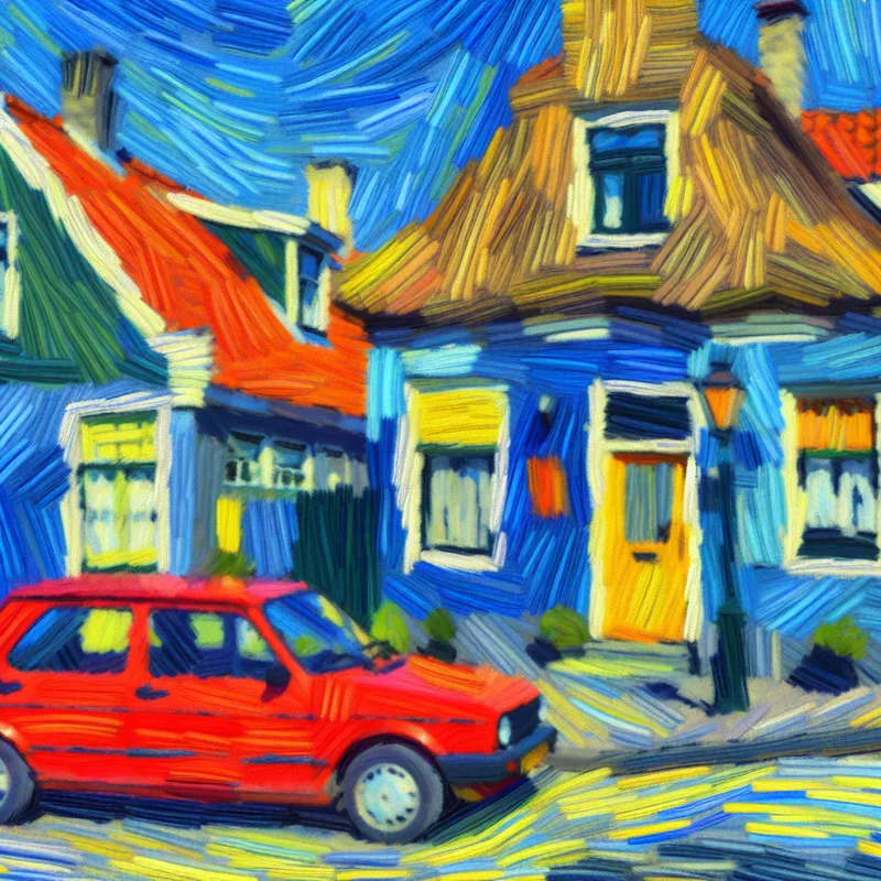 Rode auto voor charmant Nederlands huis in Van Gogh-stijl