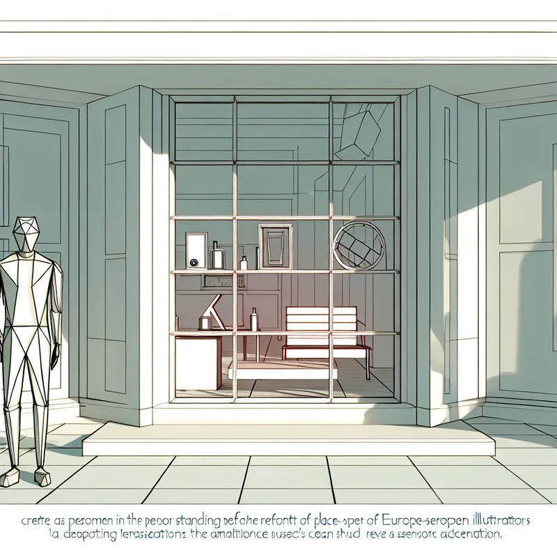 Persoon voor een retro-futuristisch winkelraam in moderne stijl