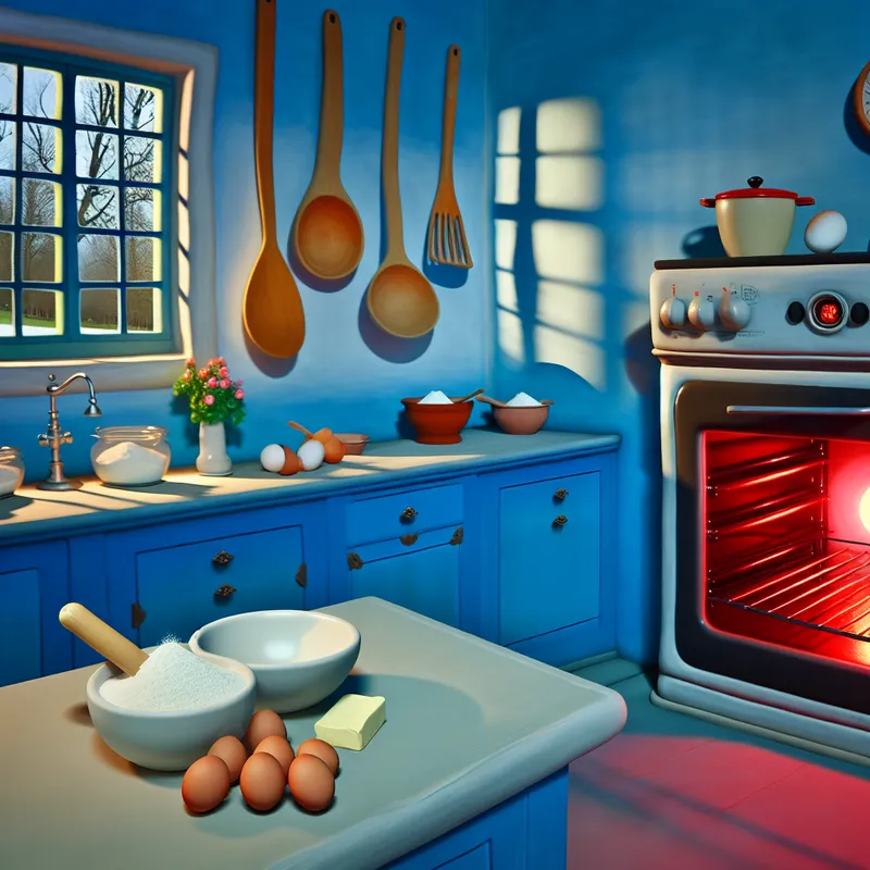 Hyperrealistische keuken met oven en ingrediënten voor deeg