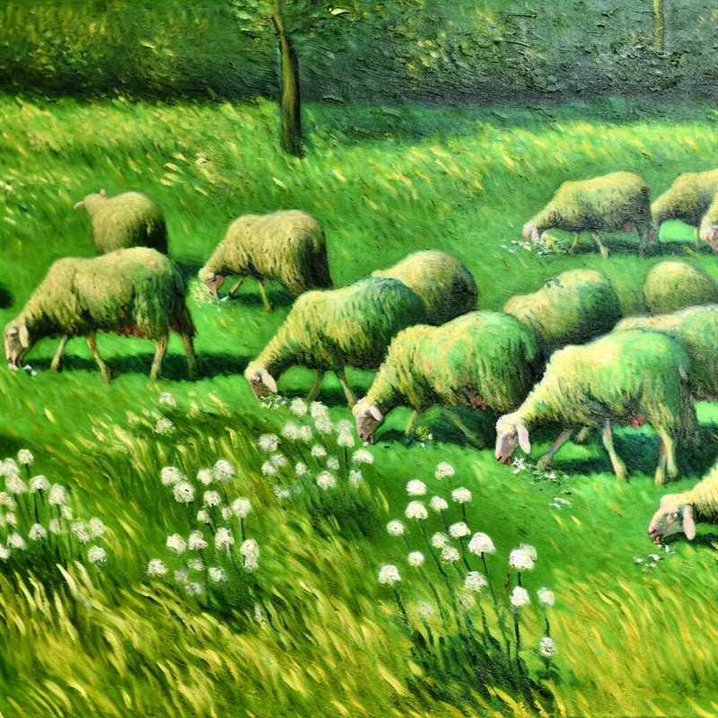 Een groep schapen graast energiek in een groene weide met een overvloed aan gras.