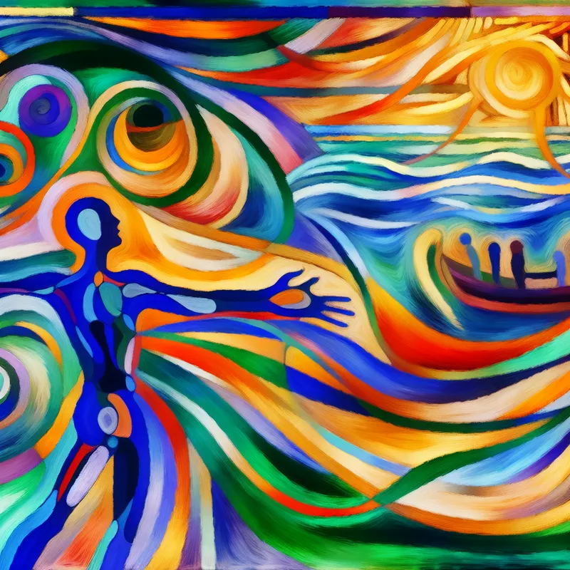 Abstracte weergave van hoop en verlangen met een figuur die zijn armen naar de horizon strekt.