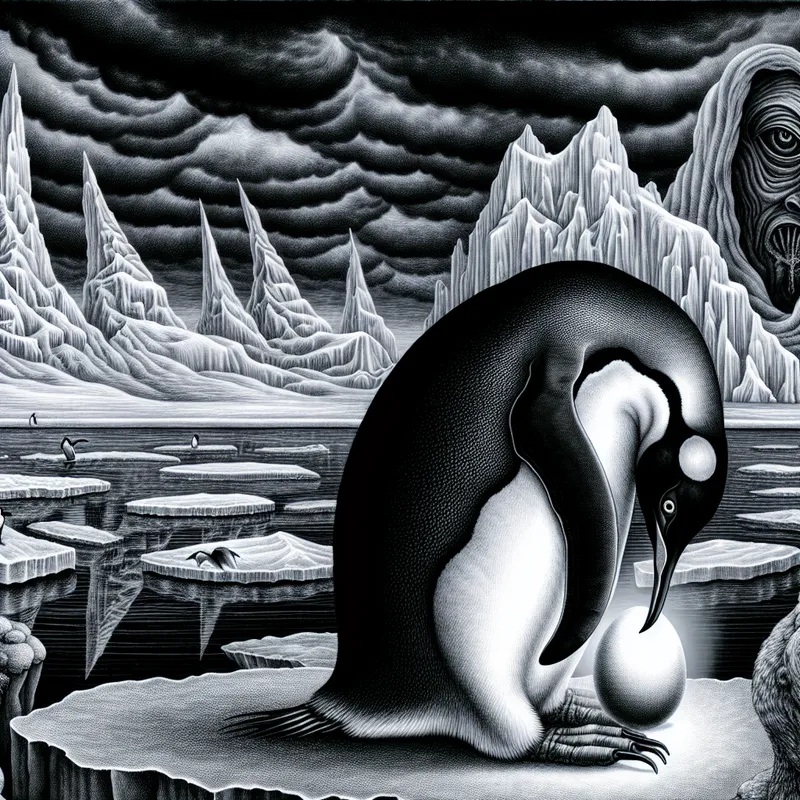 Mannelijke keizerspinguïn broedt zorgvuldig een ei uit in een ijzig Antarctisch landschap, symbolisch voor toewijding en bescherming in de natuur