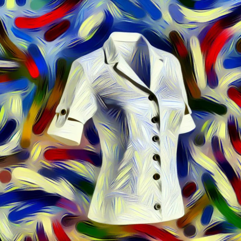 Abstract expressionistische illustratie van een witte blouse met korte mouwen, knopen en kraag, klaar om gedragen te worden naar werk, school of een feestje