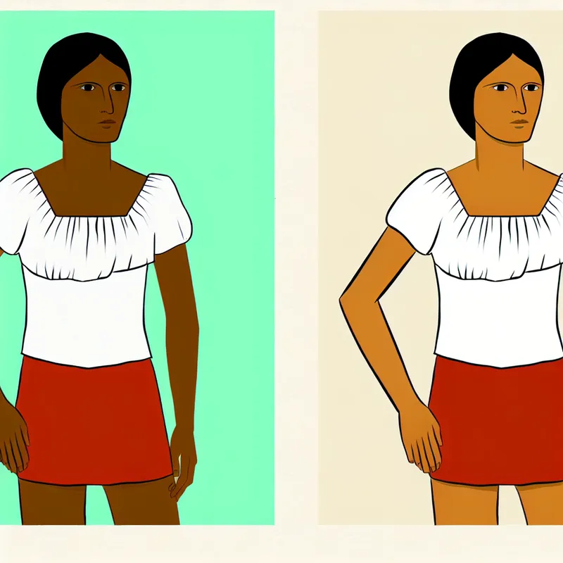 Minimalistische illustratie van een vrouw in een kort wit topje met korte mouwen, ontworpen in de stijl van Dick Bruna