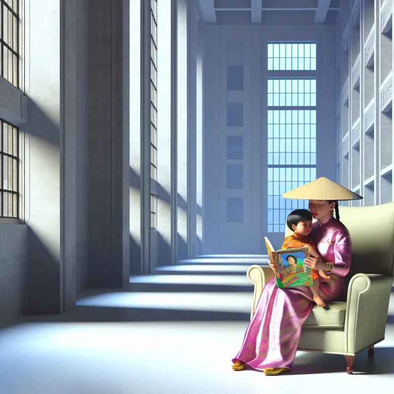 Het kindje zit op de schoot van zijn moeder een boekje te lezen.